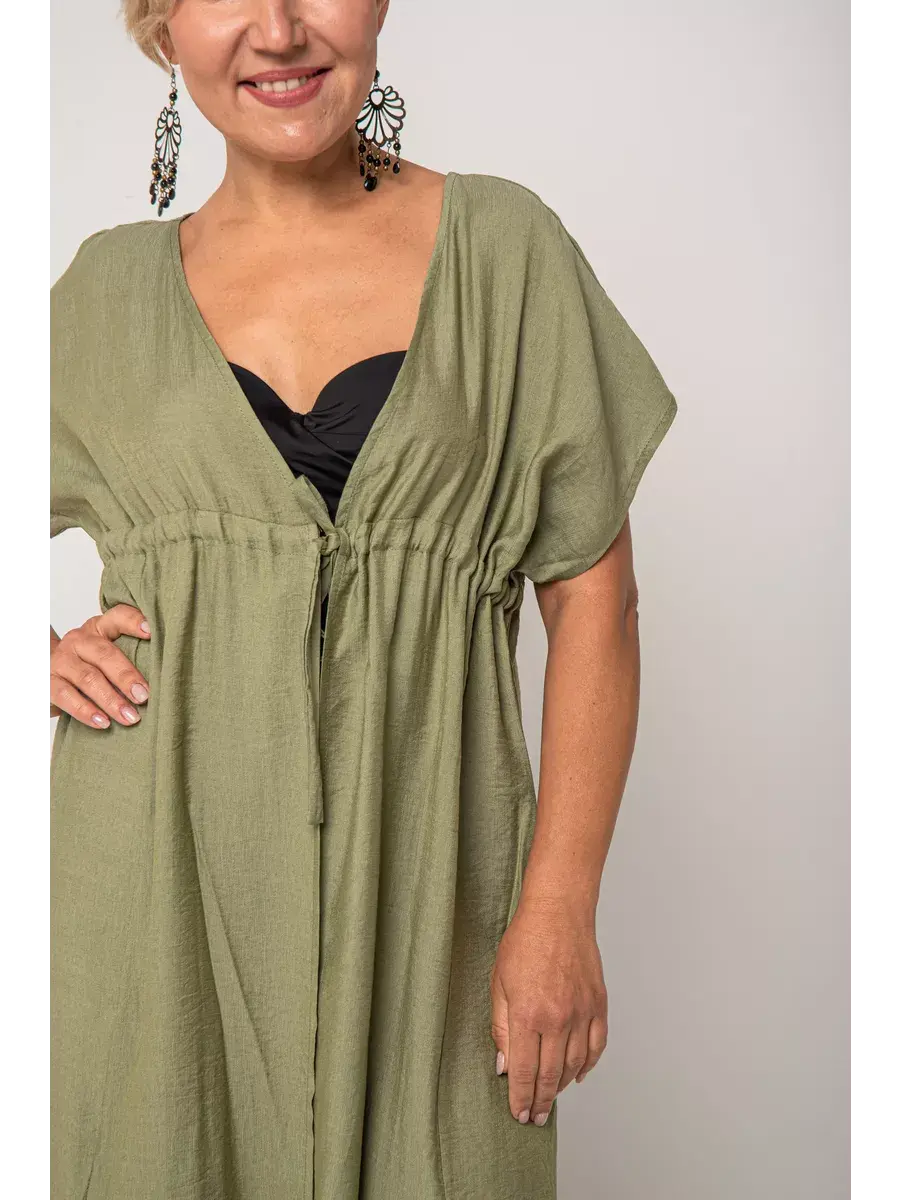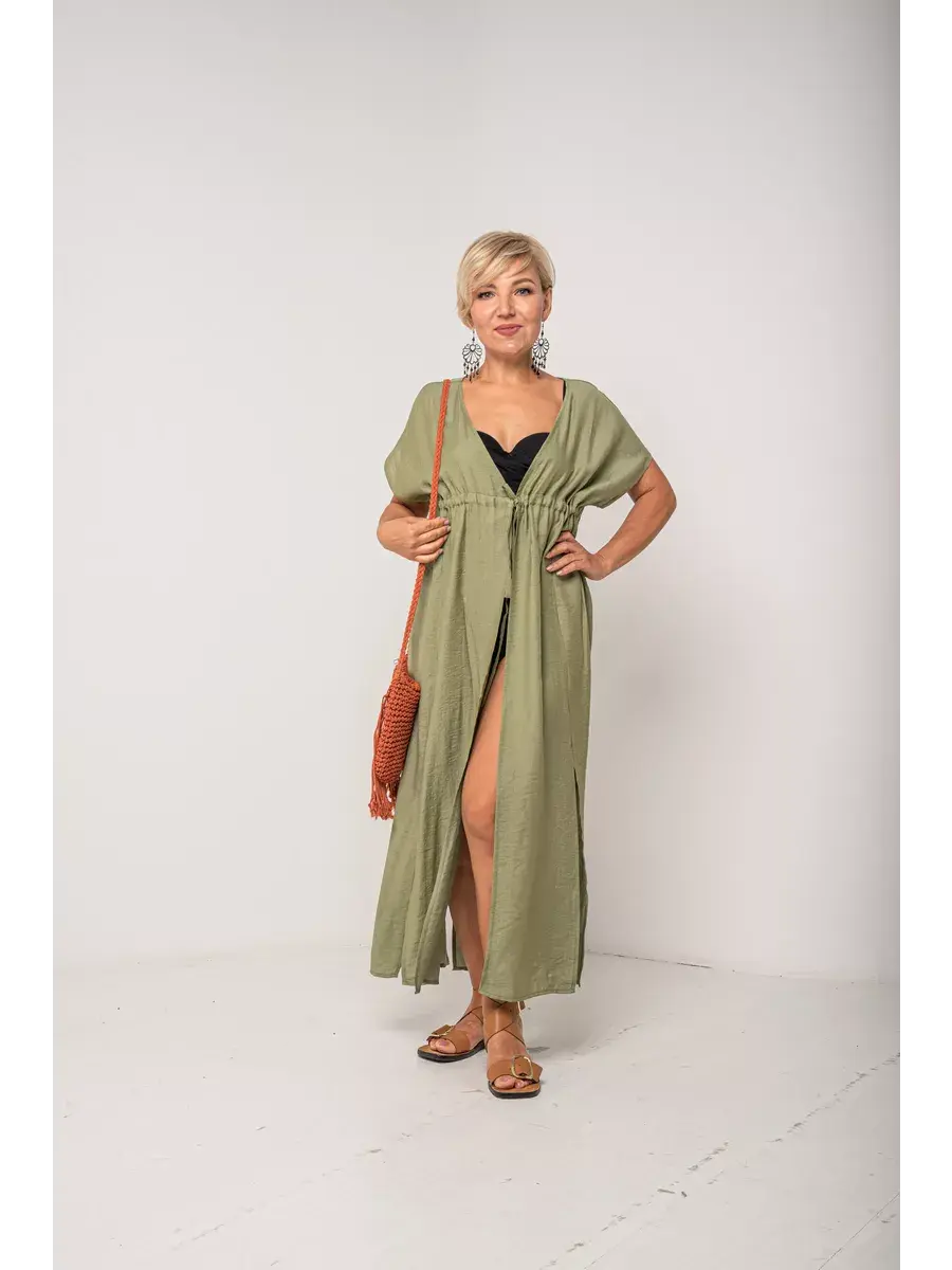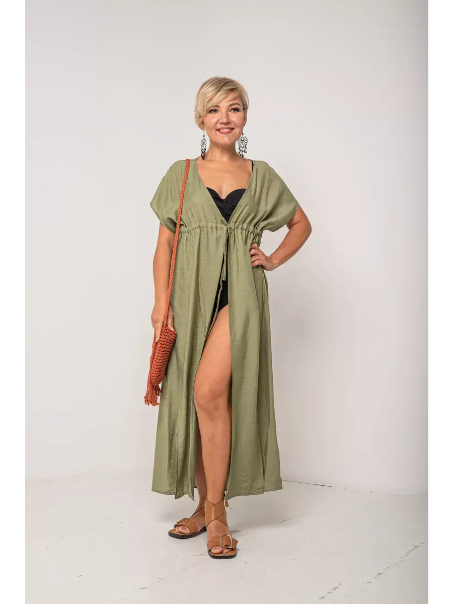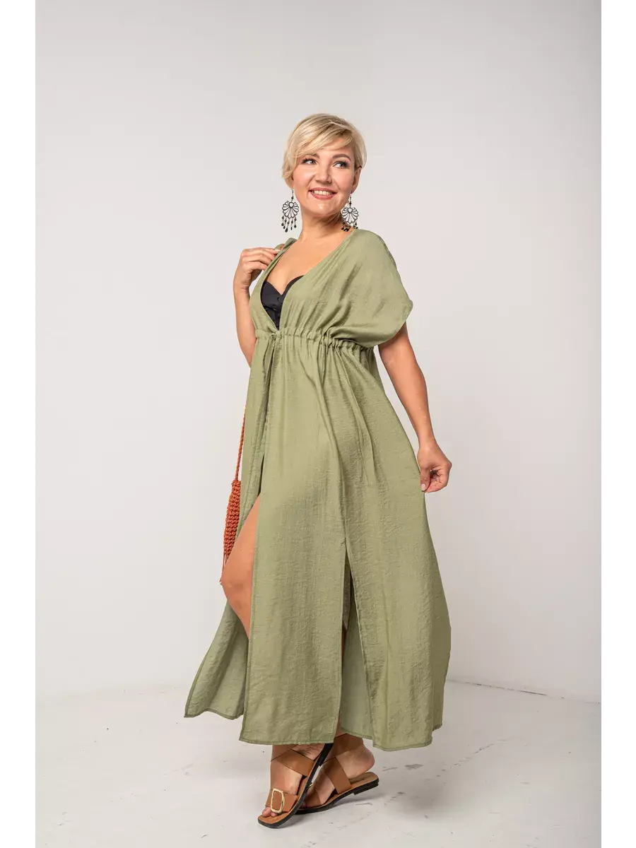 Идеальное пляжное платье, легкое, почти невесомое, закрывает плечи и ноги. Шелковистая ткань жатка из натуральных волокон ( вискоза) приятно ласкает ноги от дуновения ветерка и при ходьбе. Длинная юбка из 5-ти клиньев с разрезами и завышенная талия визуально удлиняют силуэт, делают стройнее и выше. Женское платье с запахом на кулиске можно очень легко и быстро скинуть и также быстро накинуть, что очень удобно на пляже и отдыхе у бассейна, на круизном лайнере, городском пляже и в походе. Это женственное платье может также быть нарядным домашним платьем. За ним нужен минимальный уход, оно прекрасно отстирывается даже в холодной воде. Его можно не гладить- достаточно намочить и аккуратно развесить на сушилке или плечиках. Это романтичное платье модной длины макси до лодыжки станет вашей палочкой -выручалочкой в самых разных ситуациях.