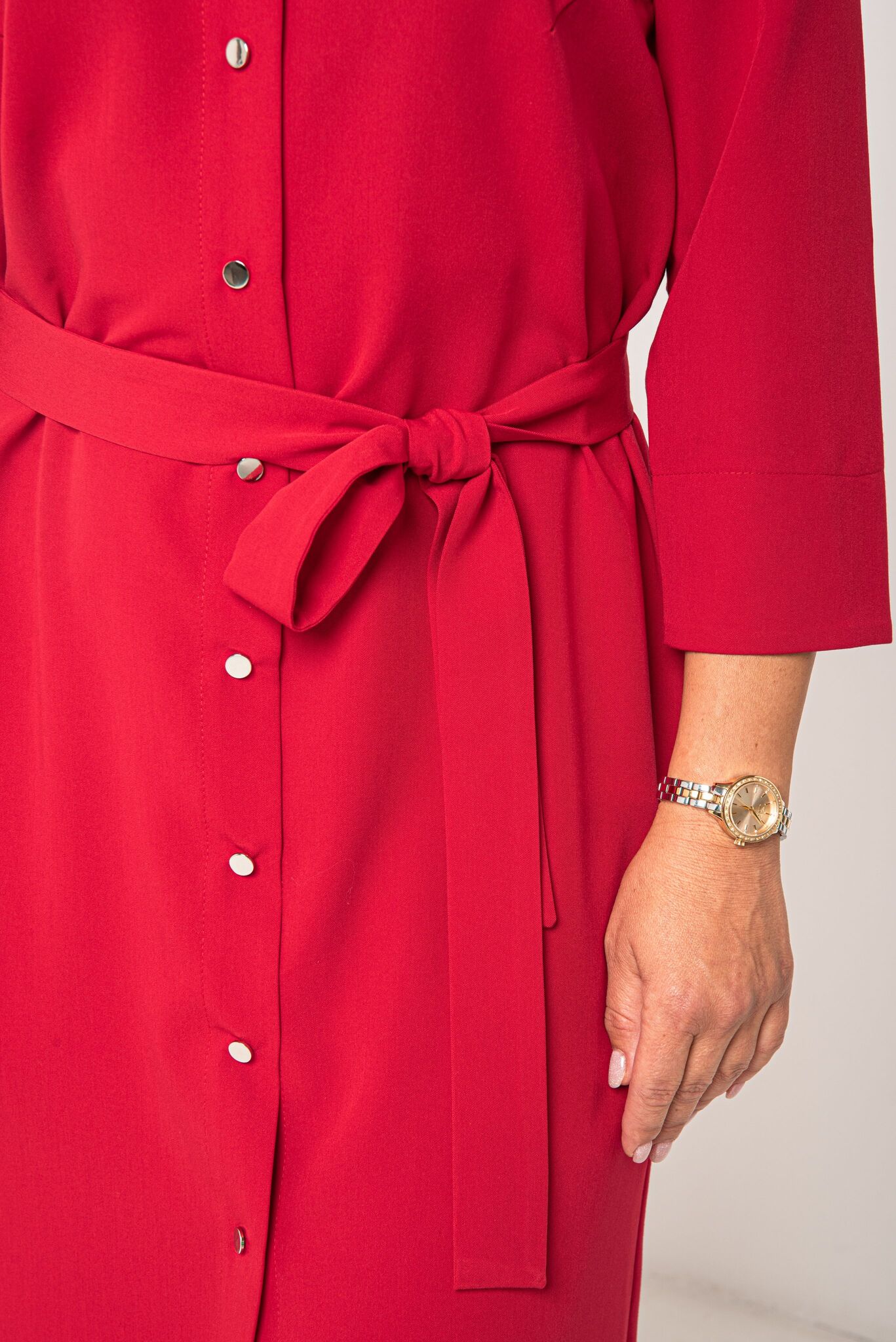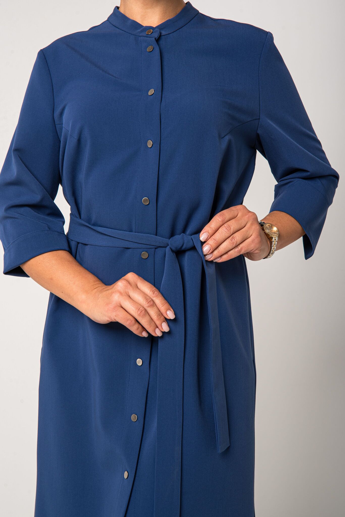 можно не подворачивать. Женское платье с поясом на талии