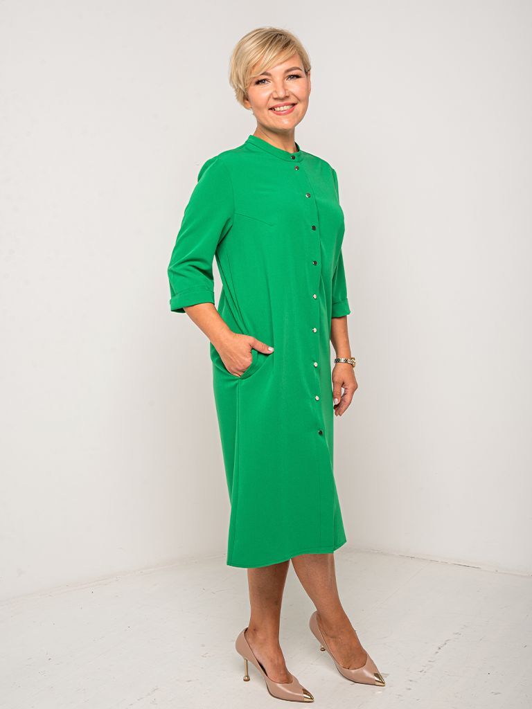 мнется и не вытягивается! Длина платья миди чуть ниже колен
