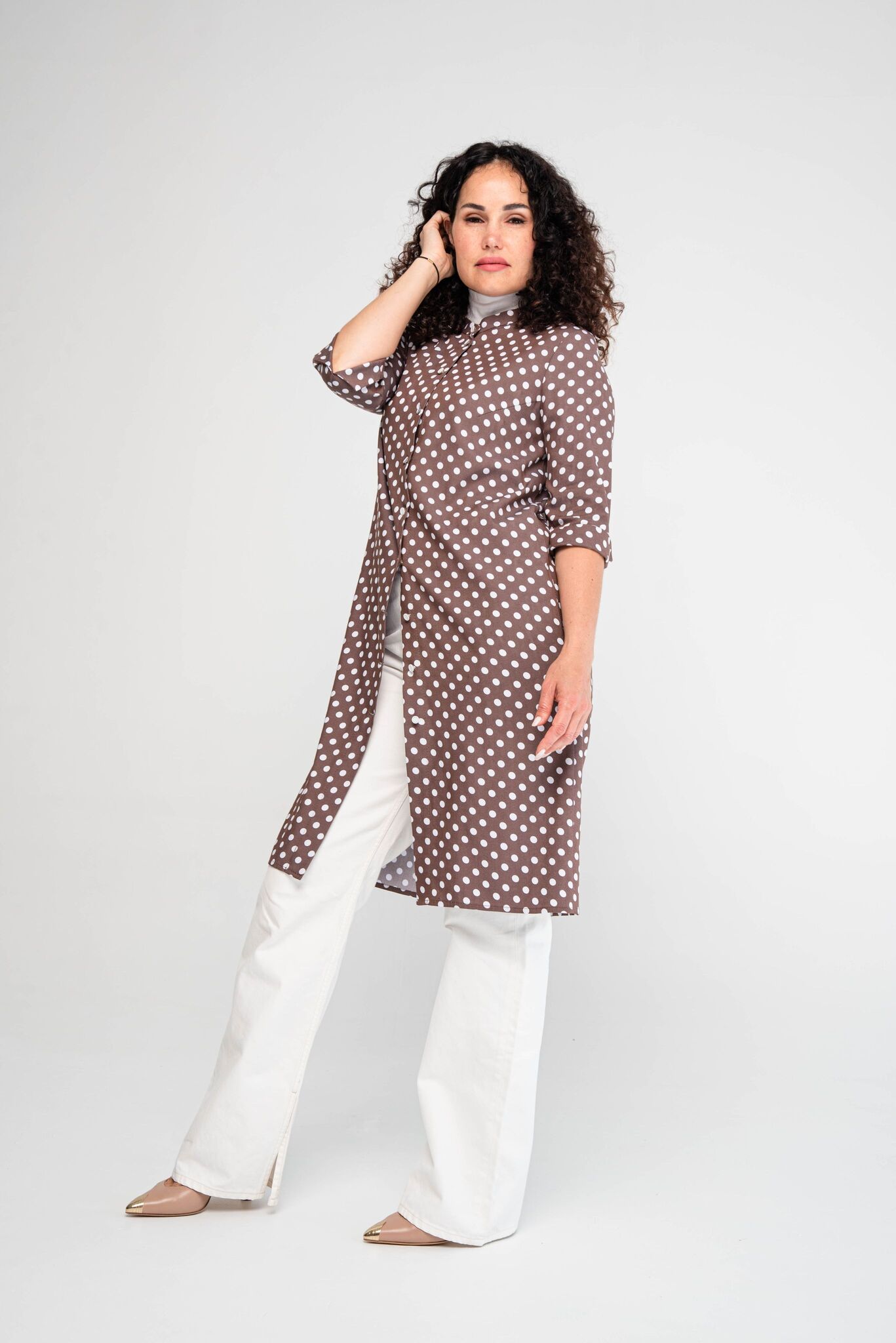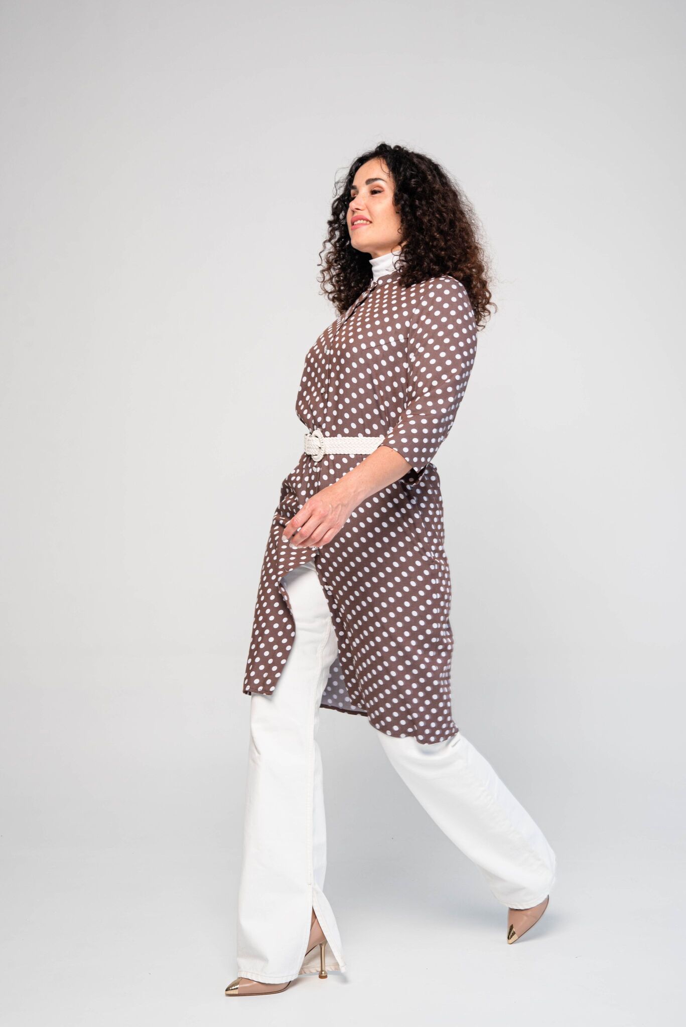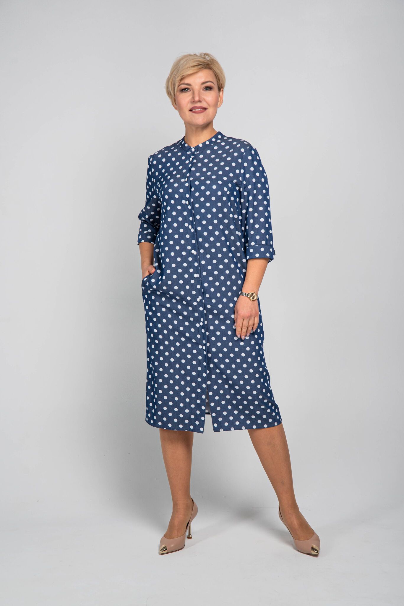 подчеркнет красоту ваших ног. Рукав ¾ с отворотами, которые
