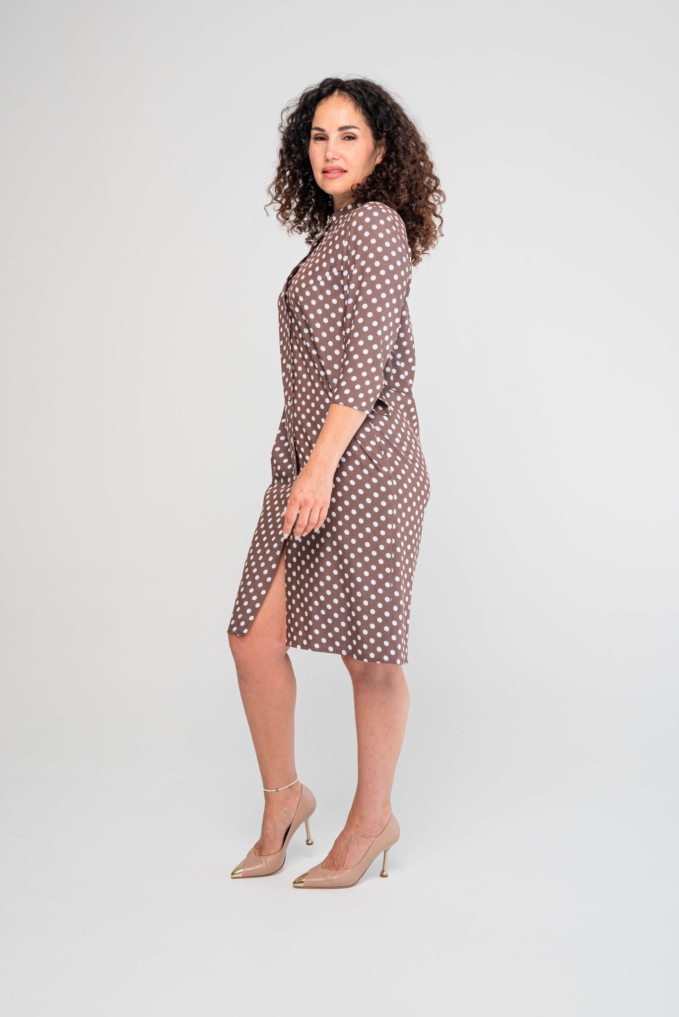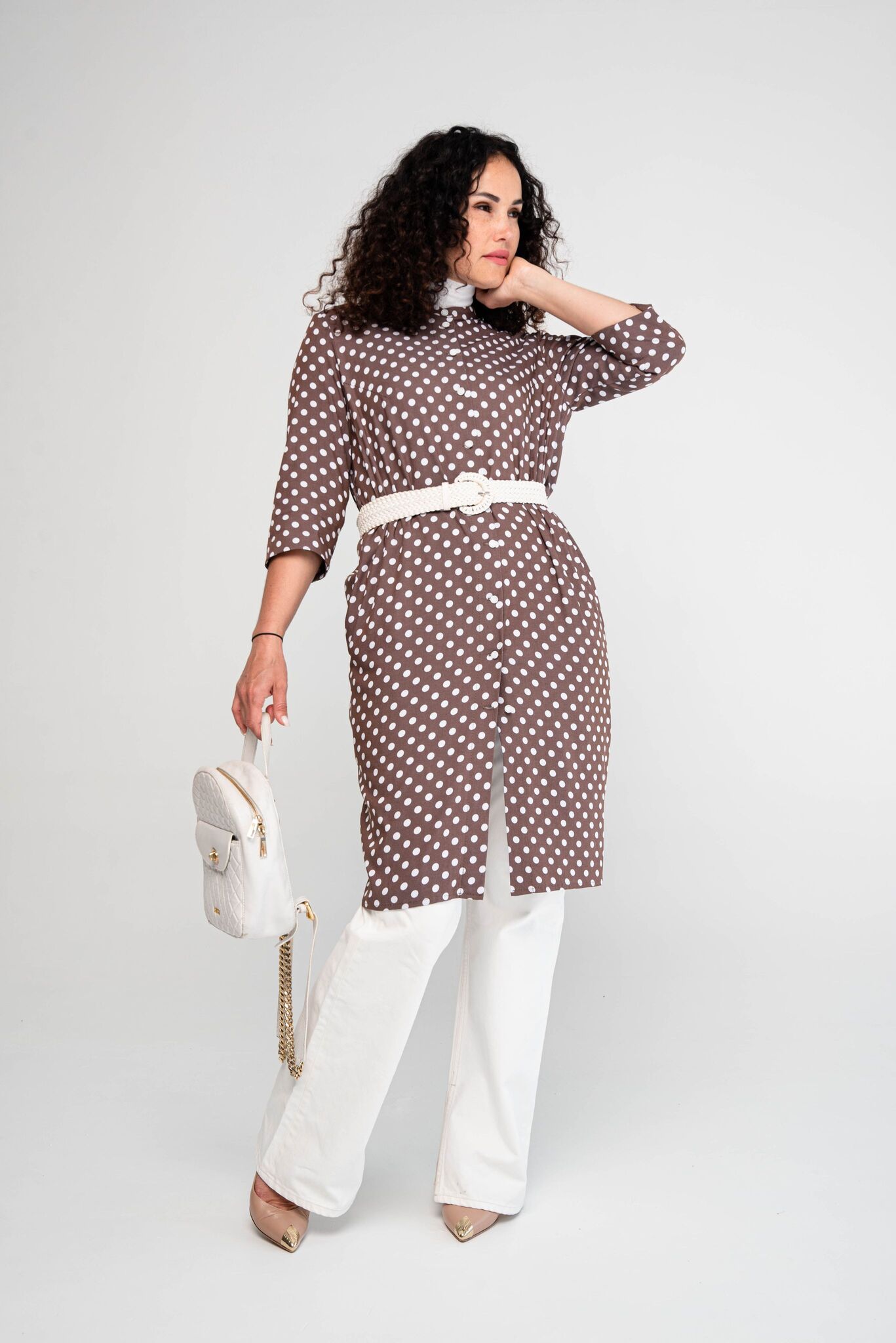 подчеркнет ее и визуально сделает тоньше. Платье-халат с