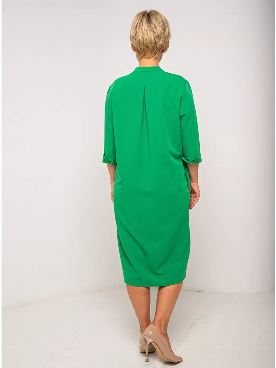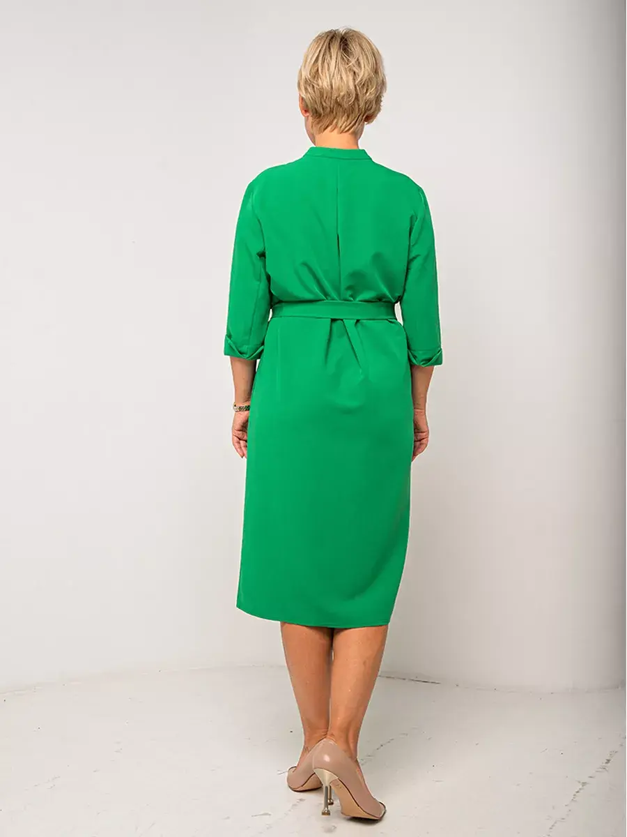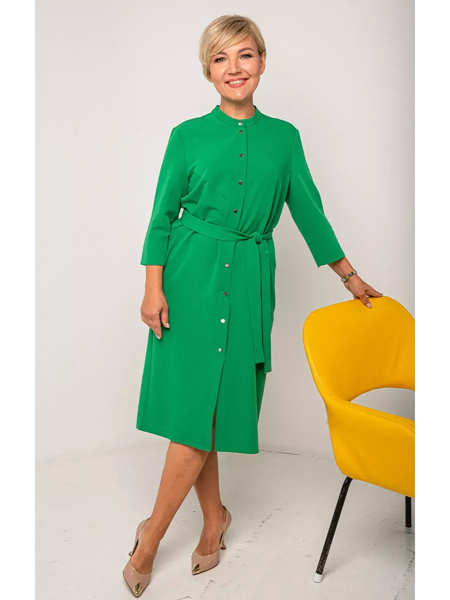 Нарядное и функциональное одновременно, это платье корректирует фигуру и подчеркивает достоинства. Вы когда-нибудь носили что-то, что заставляло вас чувствовать себя на вершине мира? Это платье – ваш билет на этот самый верх. Прямой крой в сочетании с кнопками по всей длине визуально вытягивает силуэт, а воротник-стойка добавляет изысканности.